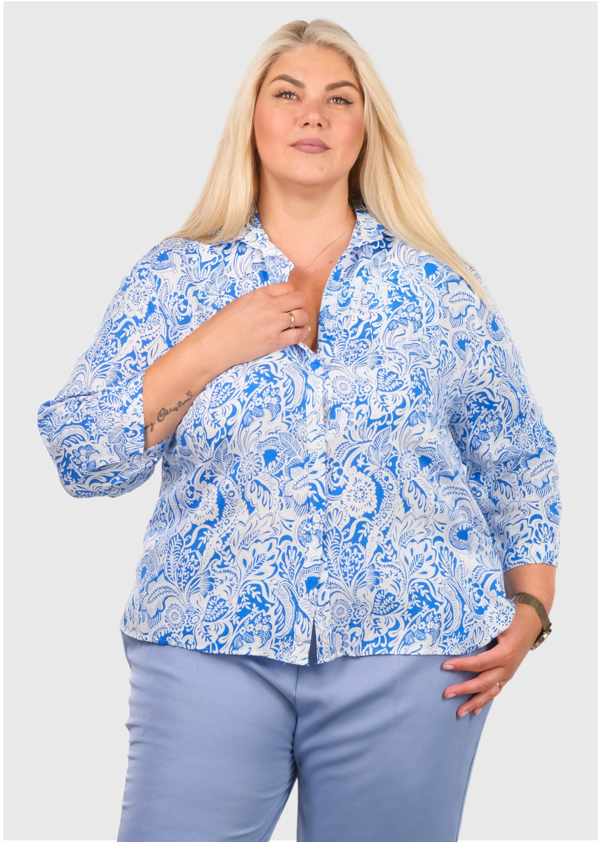 Kira Plus Size blue printed blouse