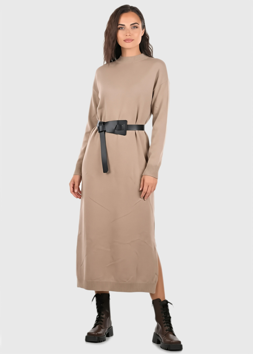Casey light brown sweater dress with belt
