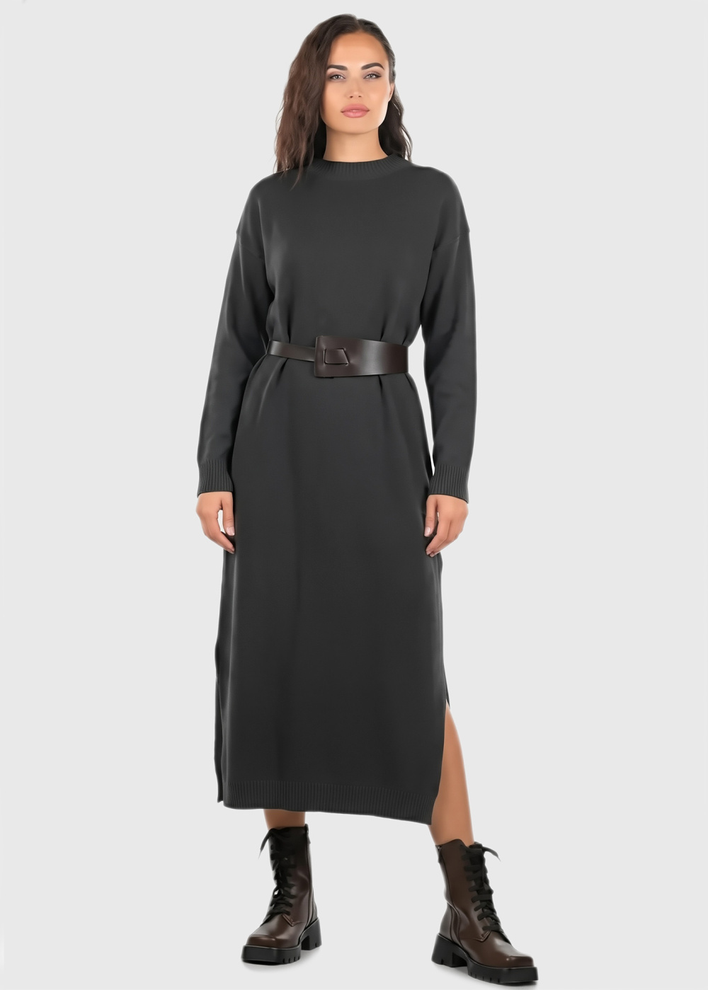 Casey black sweater dress with belt