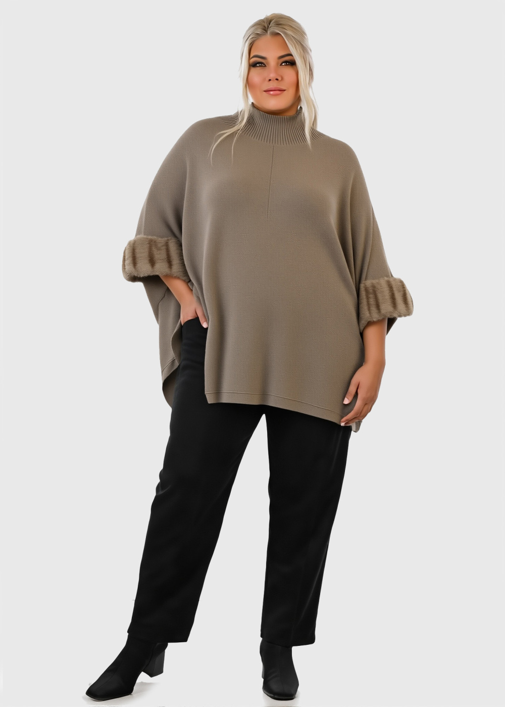 Harper light brown fur inserts sweater