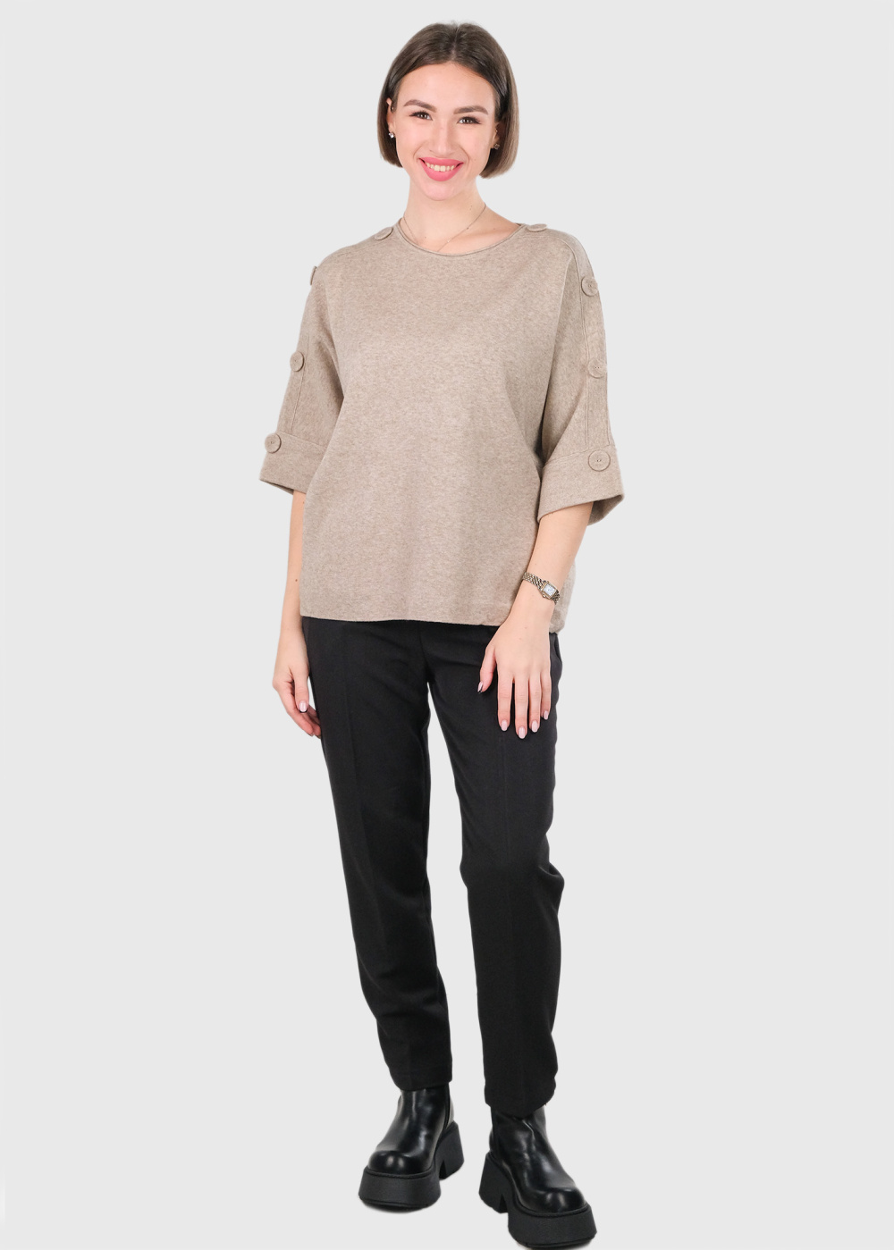 Abigail beige three quarter sleeve sweater