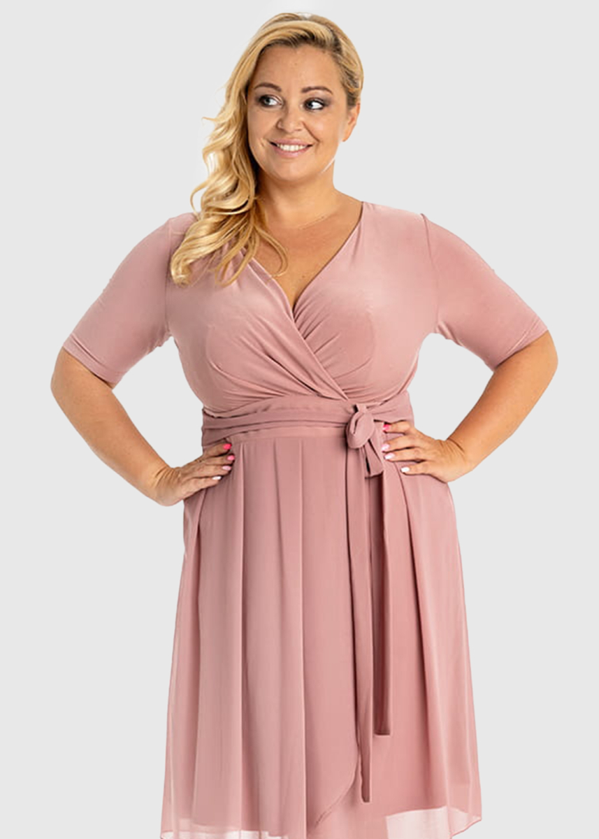 Arcelia Plus Size light pink short evening dress