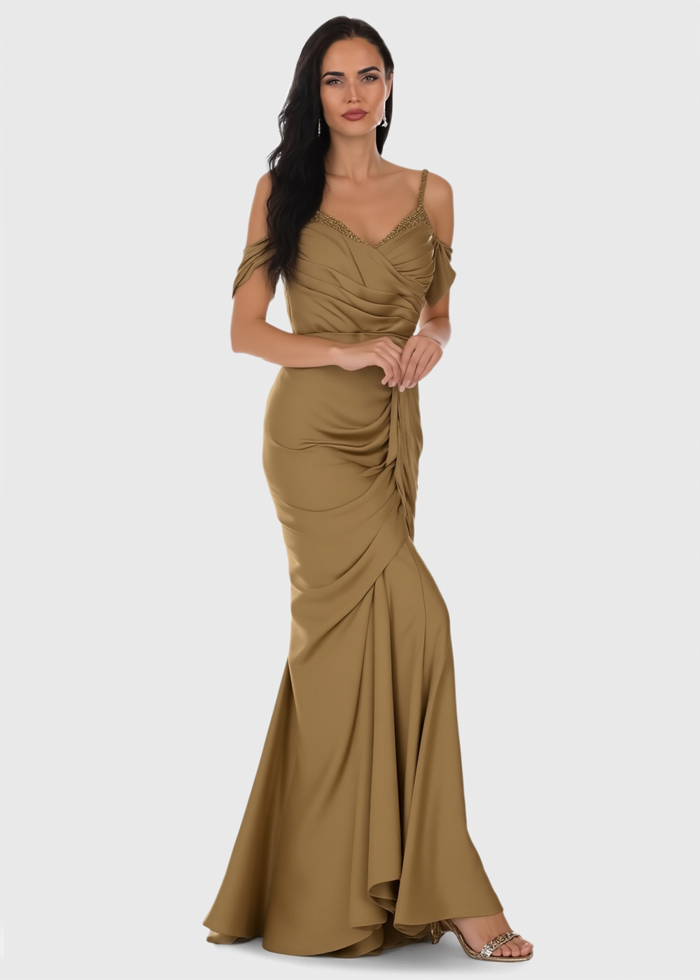 Pastora beige cami strap evening dress