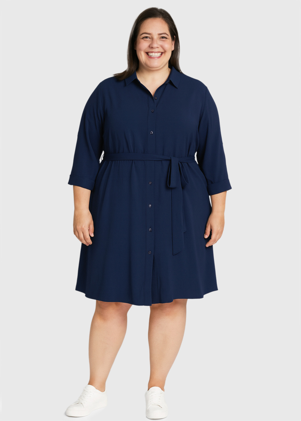 Tavita Plus Size dark blue dress with belt