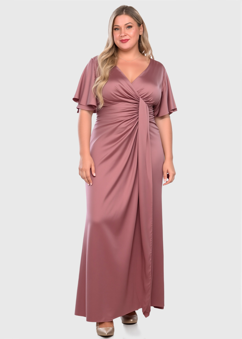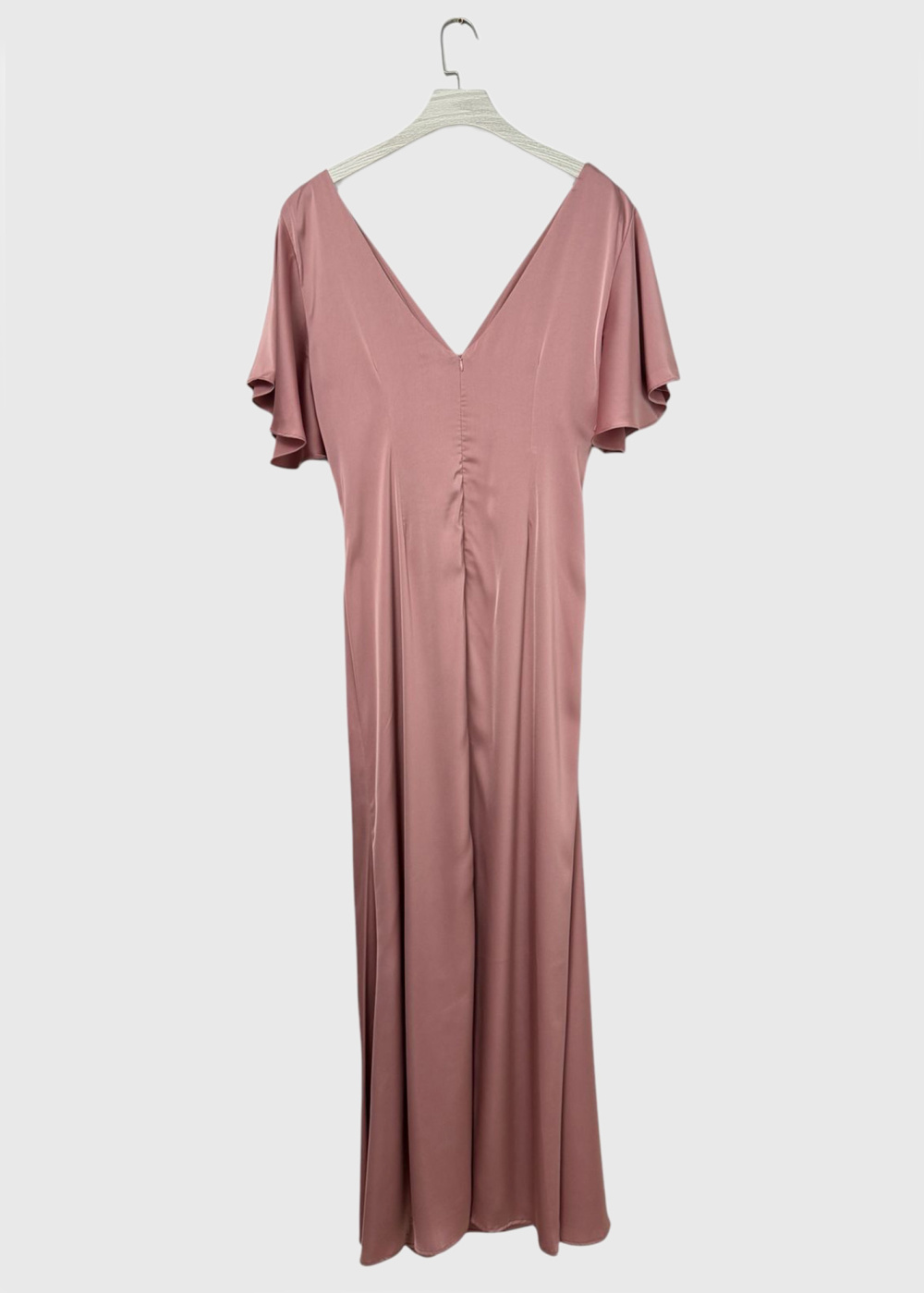 Federica pink V-neck evening dress Federica pink V-neck evening dress - back Federica pink V-neck evening dress