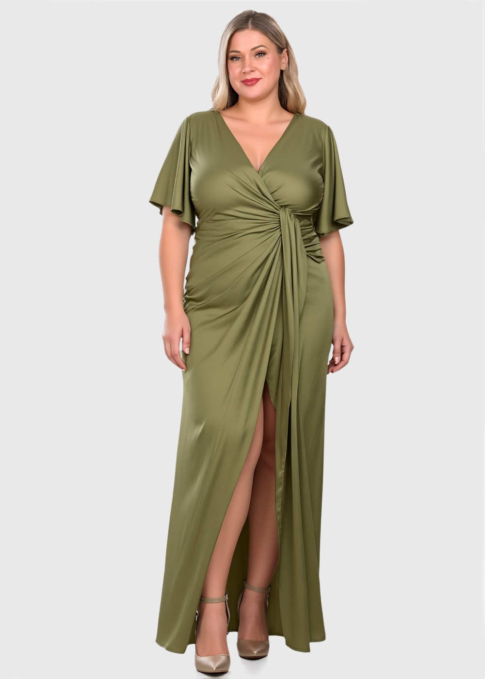Khaki tie waist dress Khaki tie waist dress - back Khaki tie waist dress