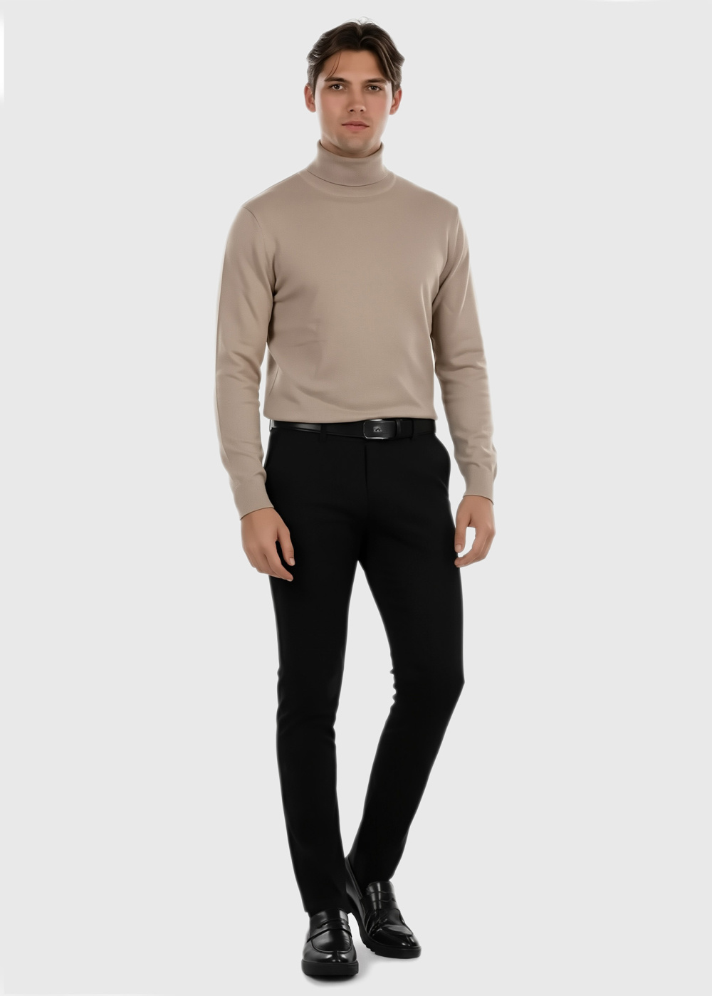 Beige textured high neck sweater Beige textured high neck sweater - back Beige textured high neck sweater