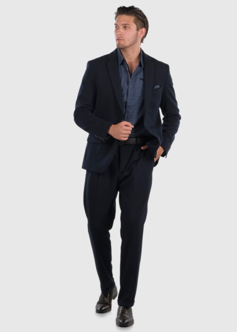 Benazir Plus Size Regular Fit dark blue woolen men's suit Benazir Plus Size Regular Fit dark blue woolen men's suit - back Benazir Plus Size Regular Fit dark blue woolen men's suit