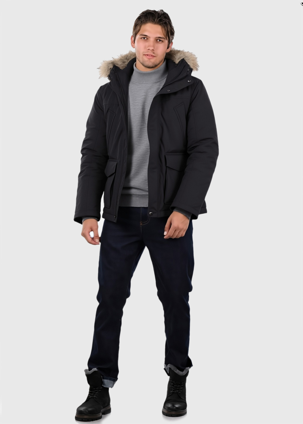Leksi black men's parka with patch pockets Leksi black men's parka with patch pockets - back Leksi black men's parka with patch pockets