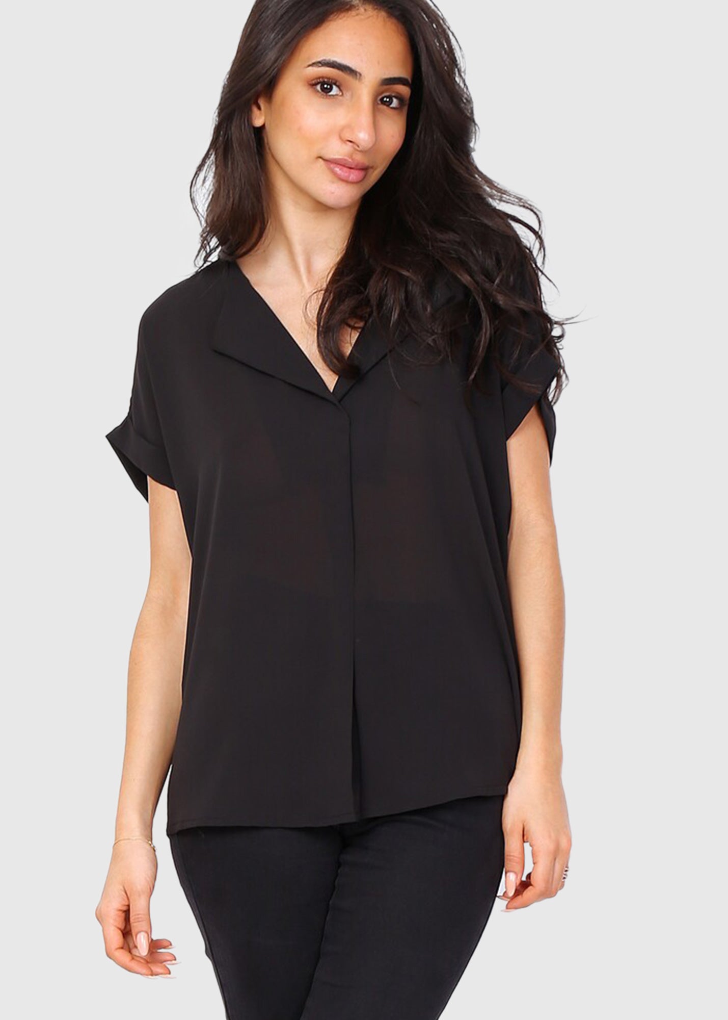 Giannina черная блузка с короткими рукавами