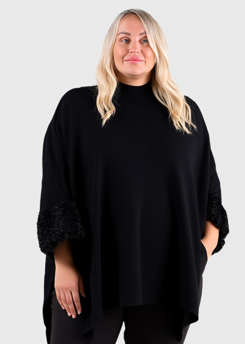 Harper черный свитер с меховыми вставками