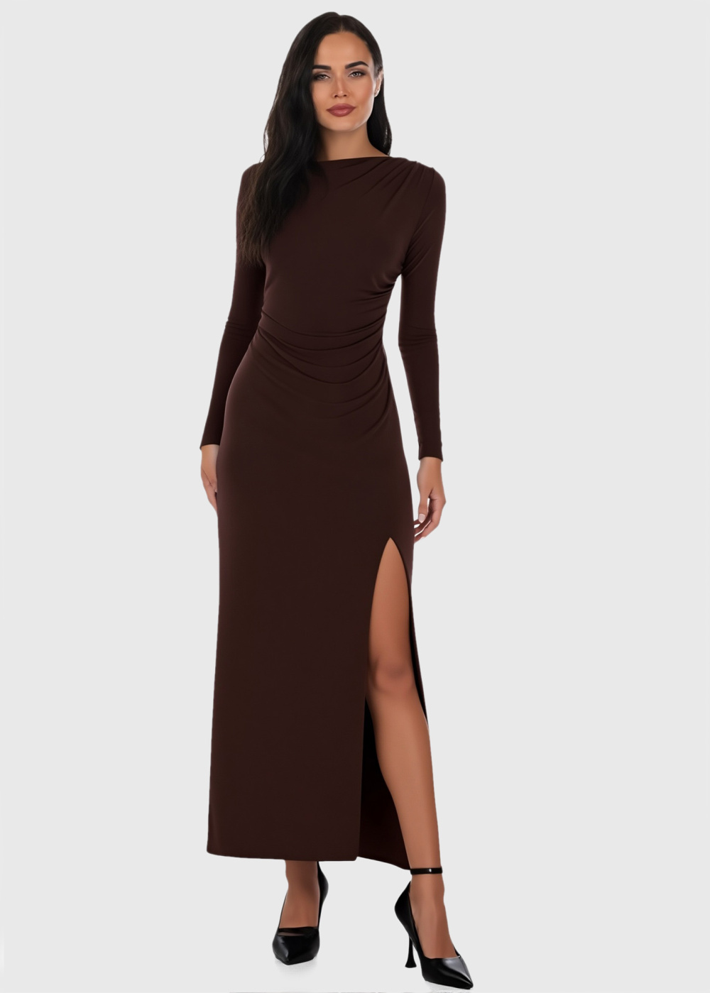 Gwen коричневое длинное вечернее платье с открытой спиной