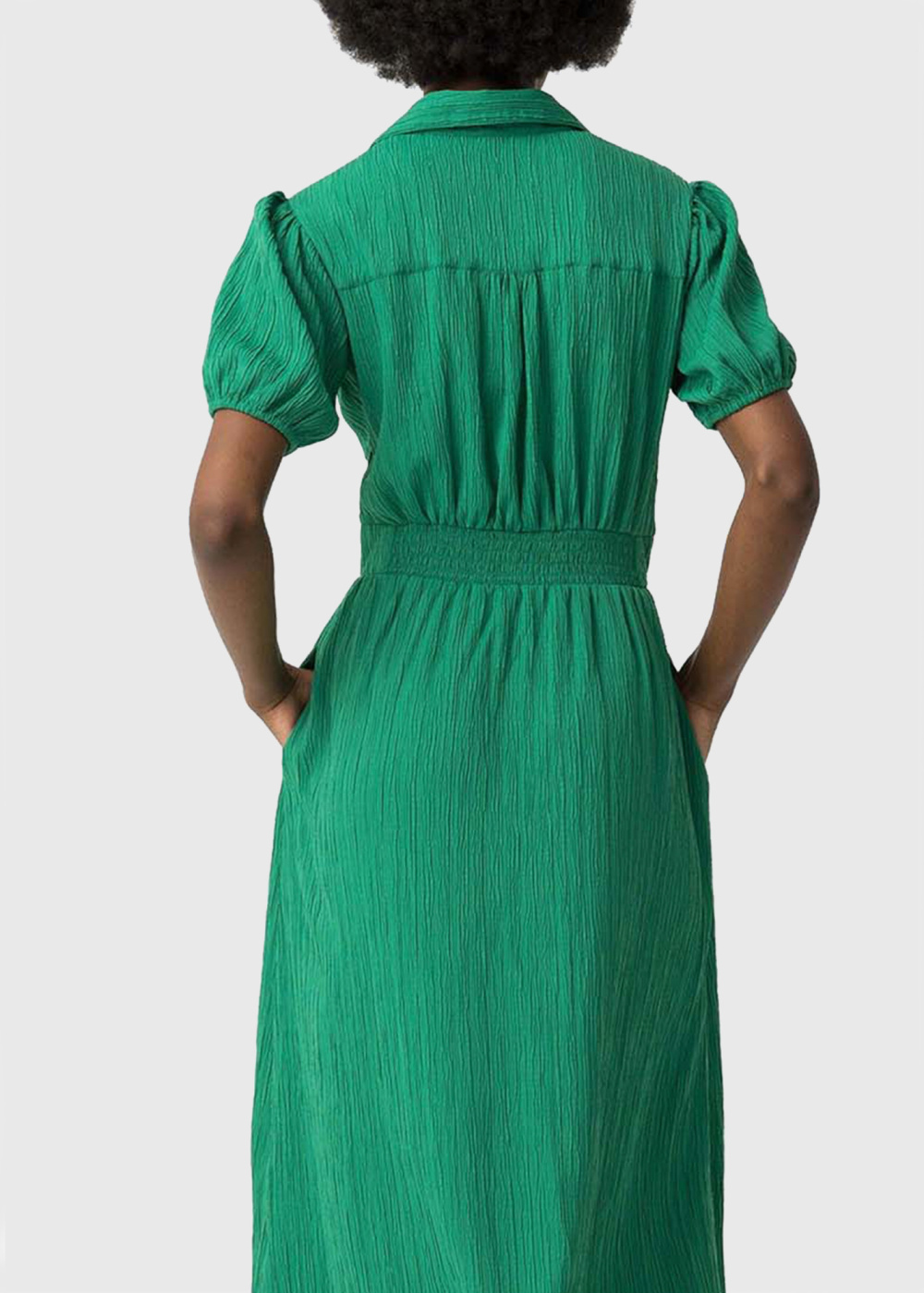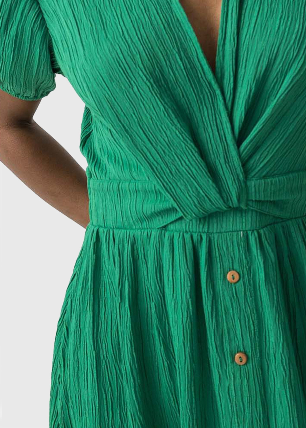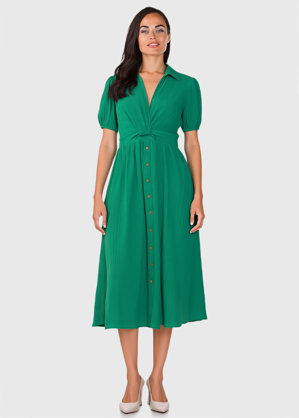 Зеленое платье с V-образным вырезом