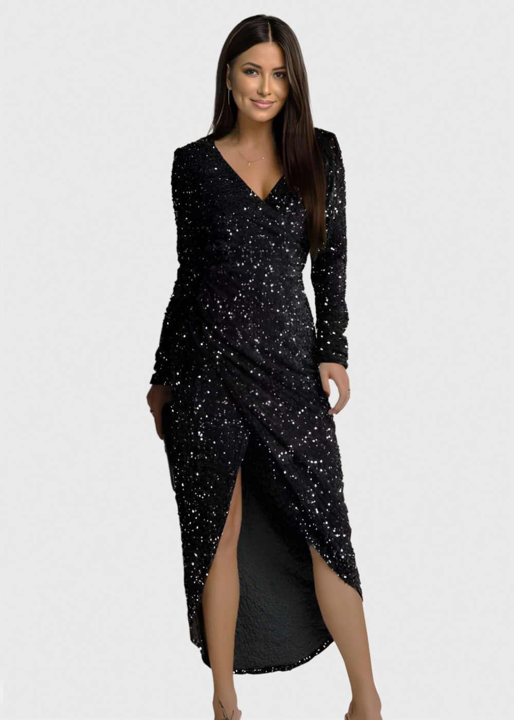 Jess черное вечернее платье с разрезом