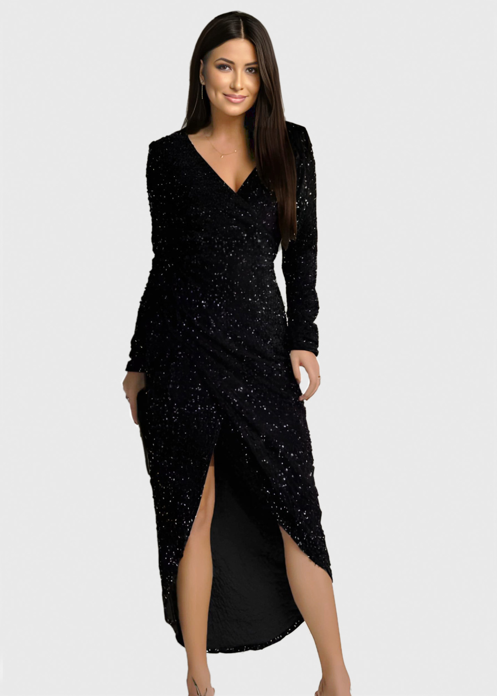 Jess черное вечернее платье с разрезом