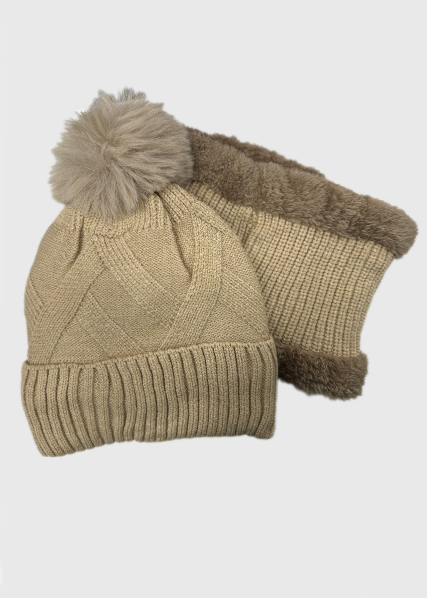 Evie бежевый шарф-снуд и шапка с помпоном