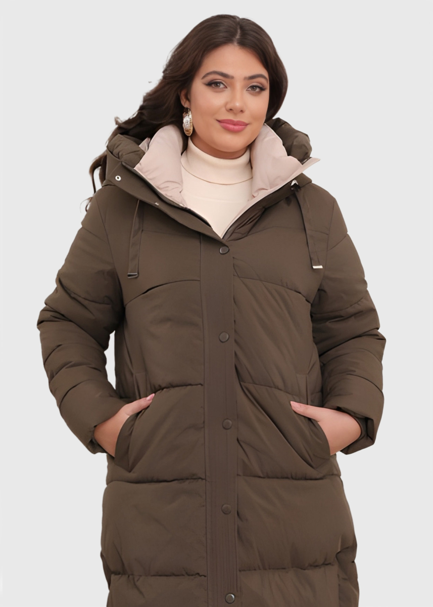 Daniela хаки длинная куртка Большого Размера с капюшоном