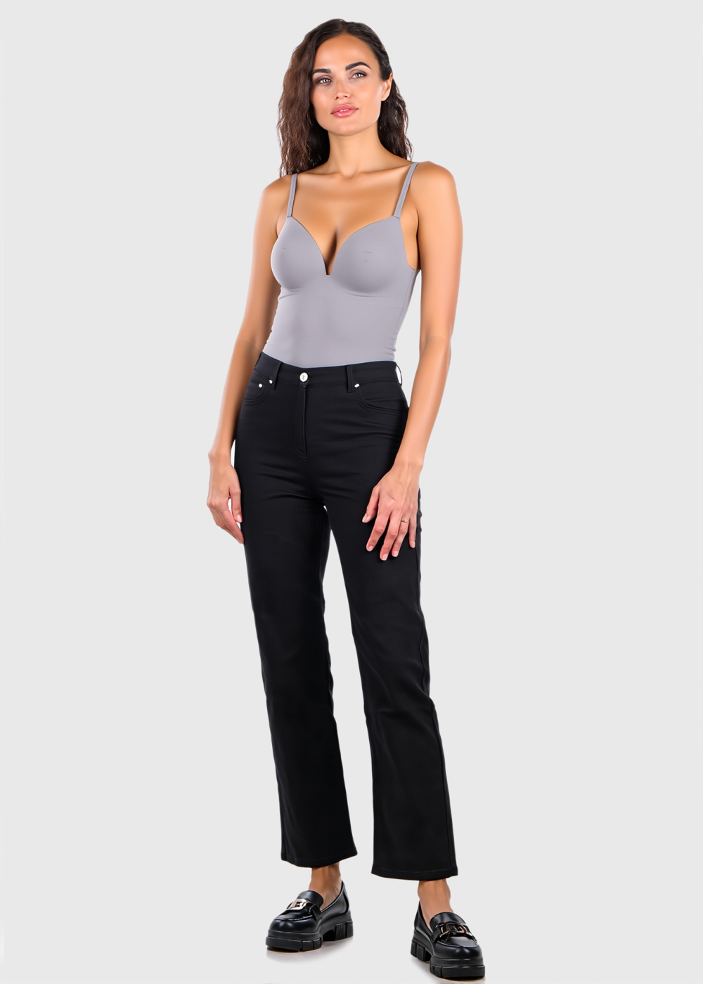 Alexandra серое боди на тонких бретельках