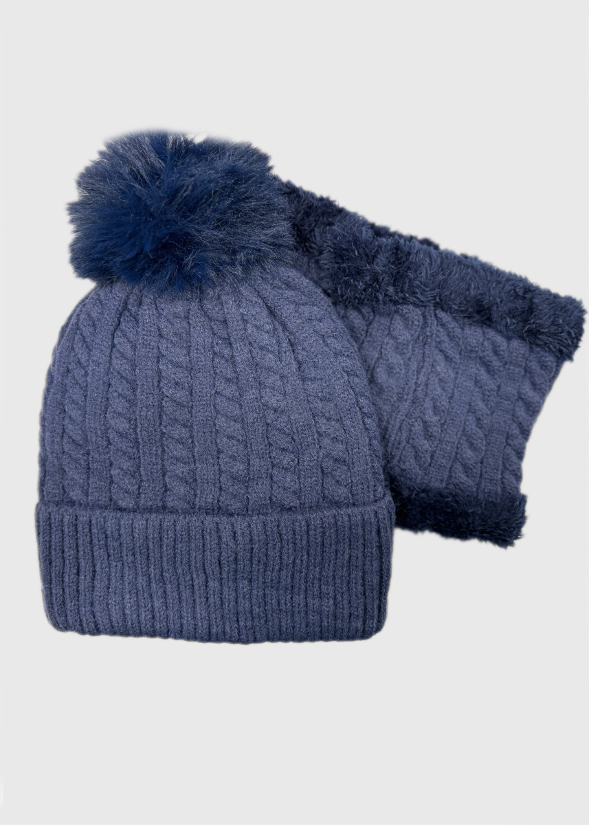 Heidi темно-синий шарф-снуд и шапка с узором "в косичку"