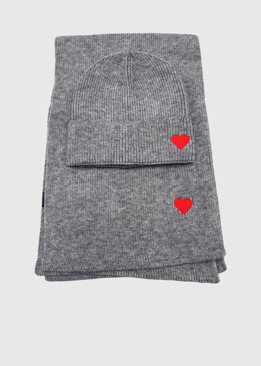 Hope pelēka šalle un cepure ar sirsiņām