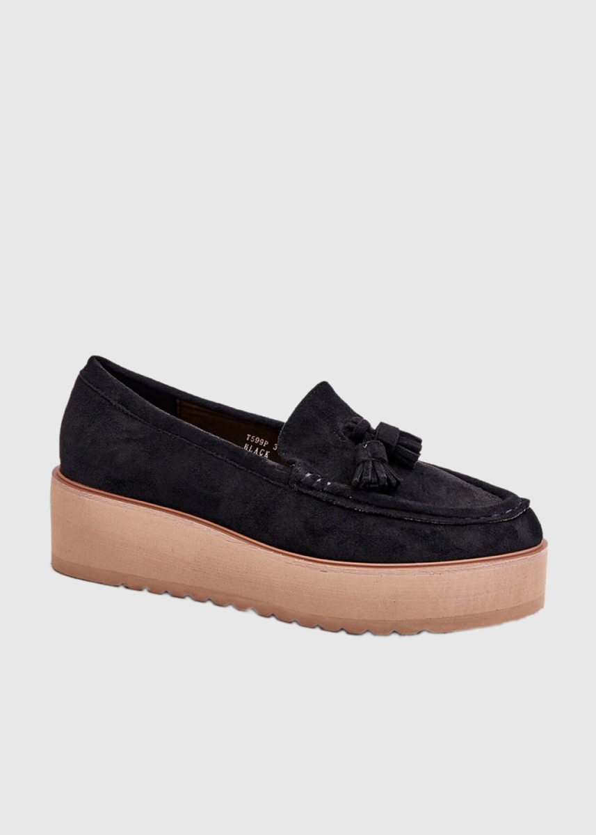 Honoria melni sieviešu mokasīni ar augstu zoli
