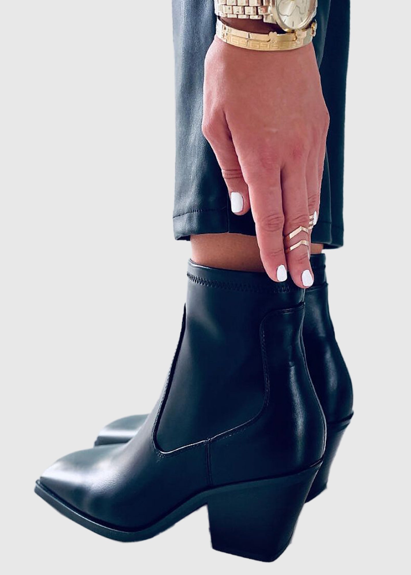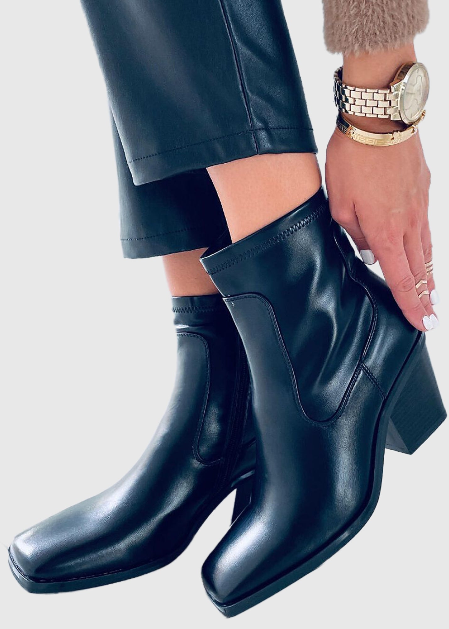 Mafalda melni sieviešu zābaki ar biezu papēdi