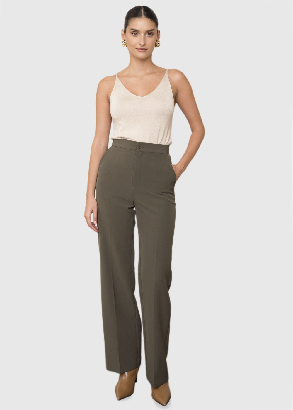 Adel haki sieviešu bikses ar augstu jostasvietu
