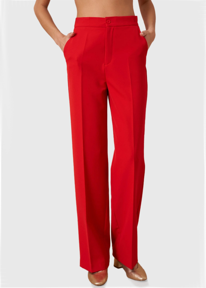 Adel sarkanas sieviešu bikses ar augstu jostasvietu