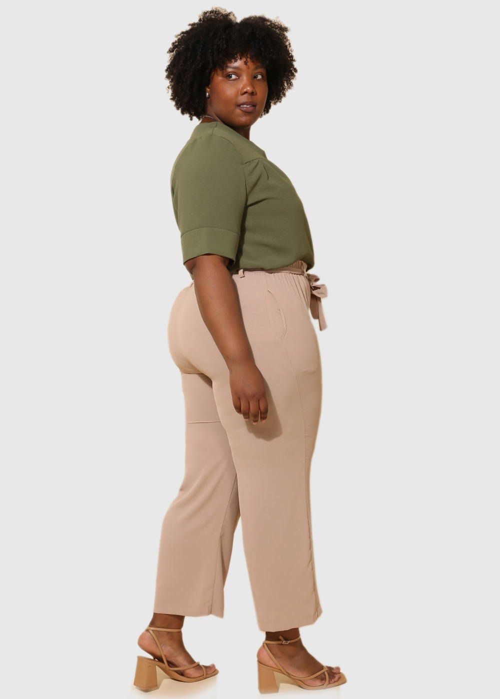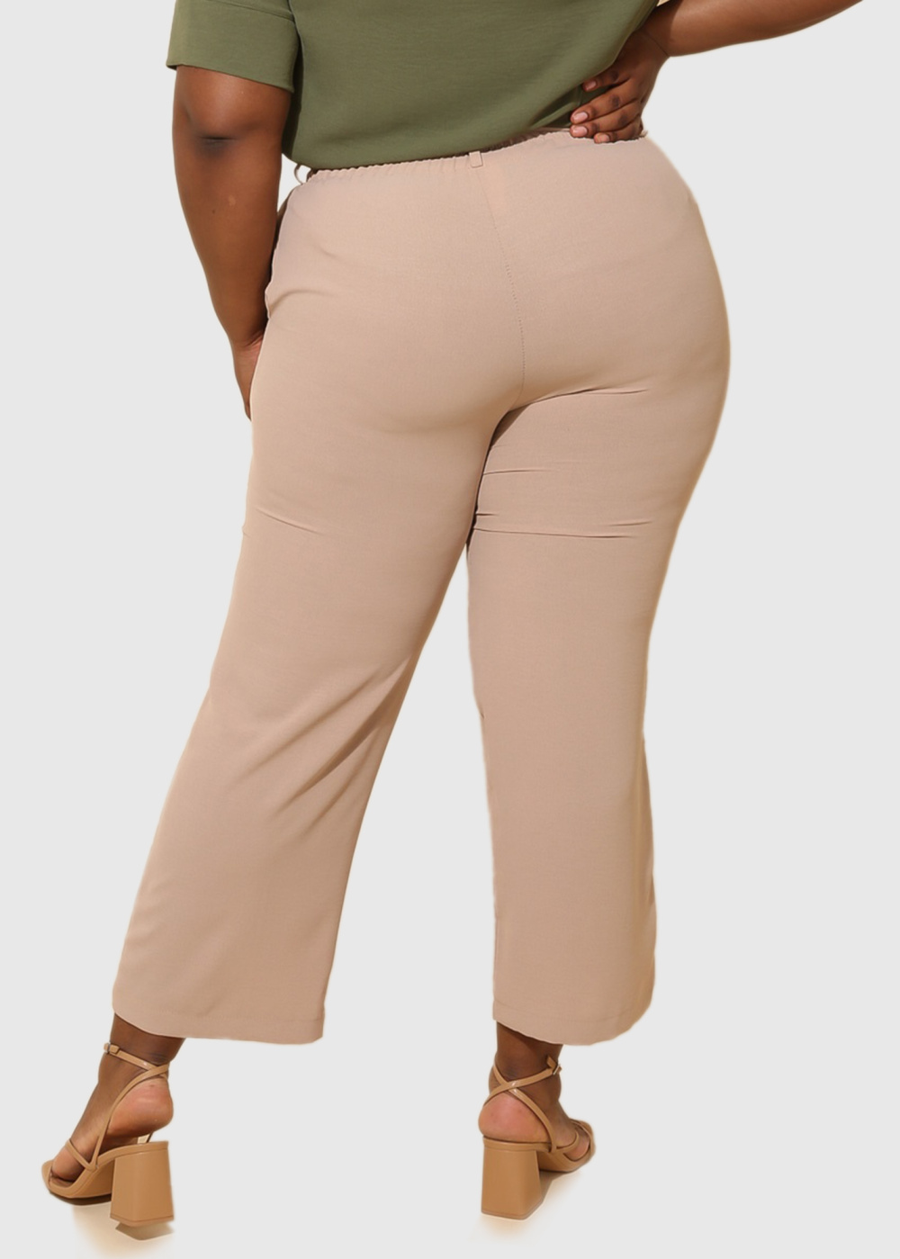 Paula Lielo izmēru tumši bēšas sieviešu bikses ar jostu