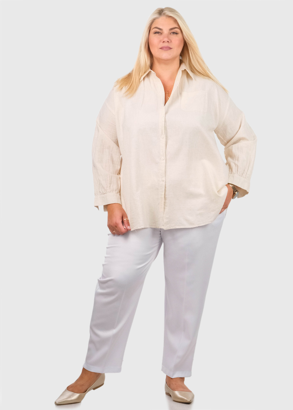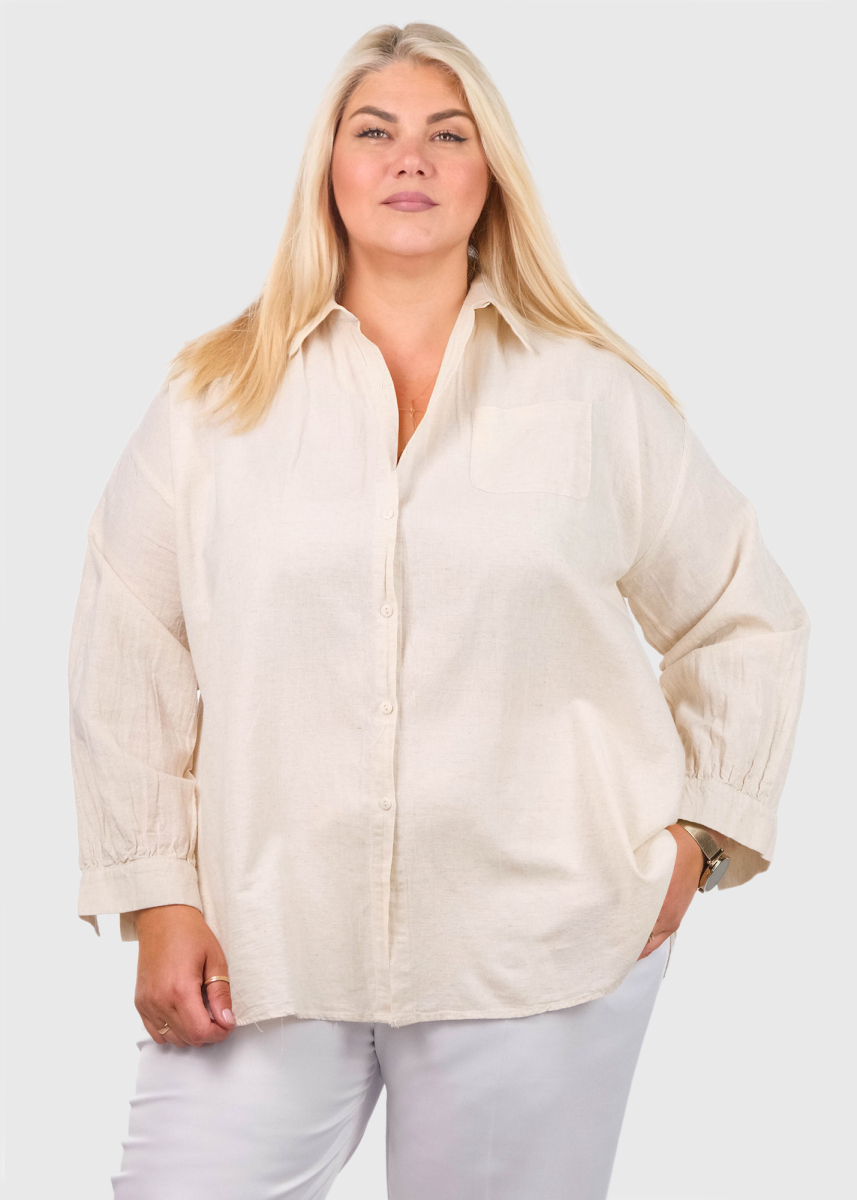 Amy Lielo izmēru bēšs krekls ar kabatām