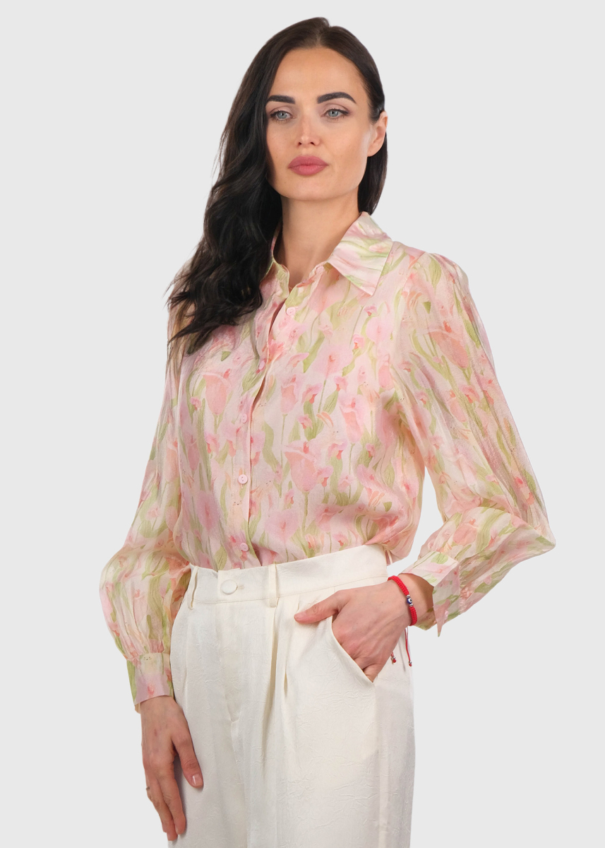 Deka rozā blūze ar ziedu rakstu