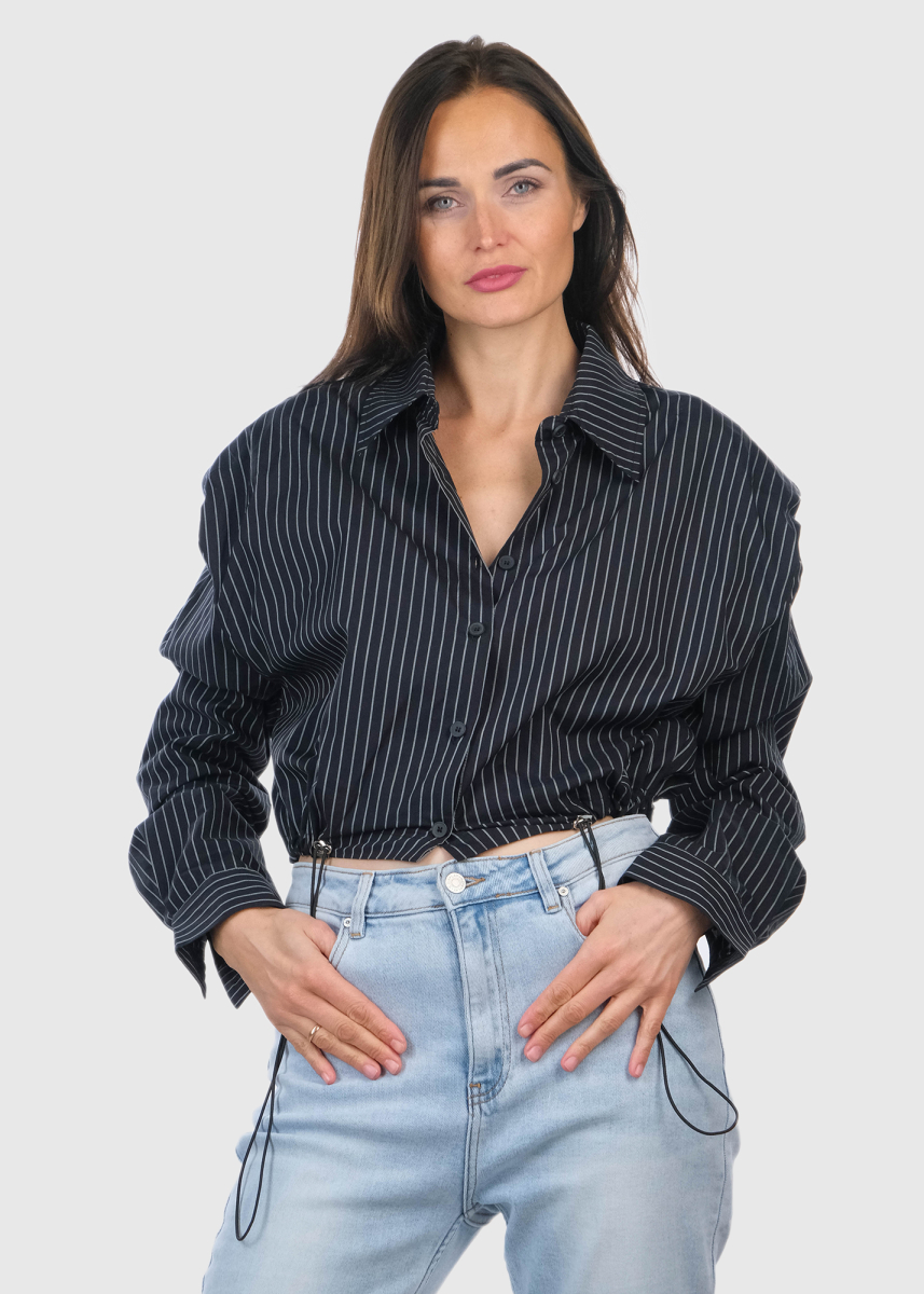 Teofila melna blūze ar aukliņas aizdari