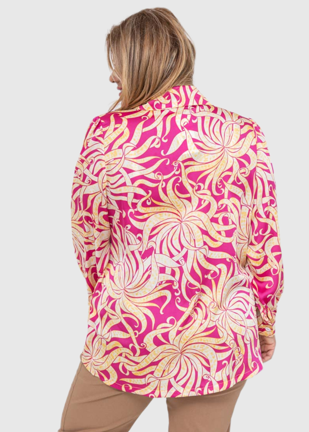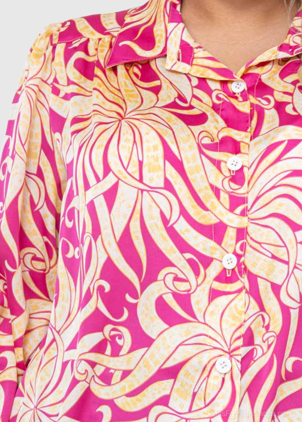 Victoriana Lielo izmēru rozā blūze ar rakstu