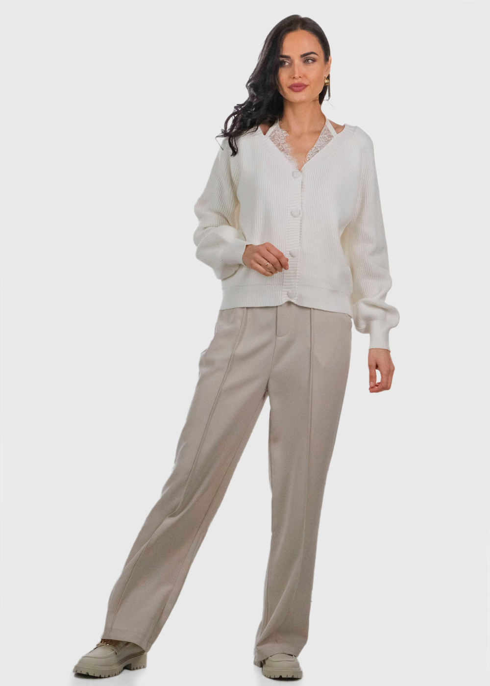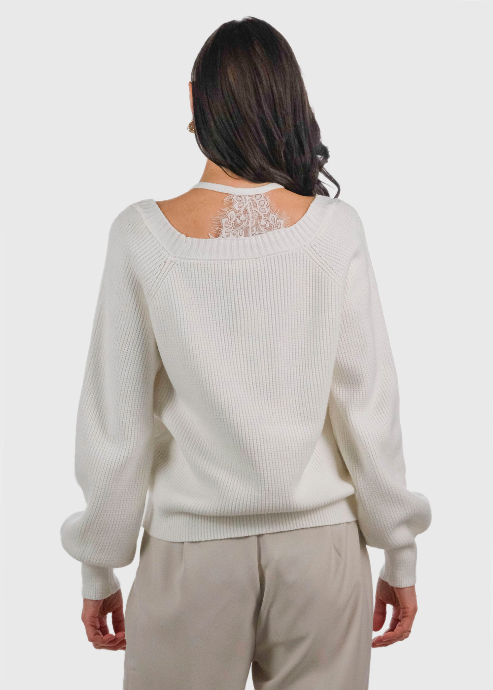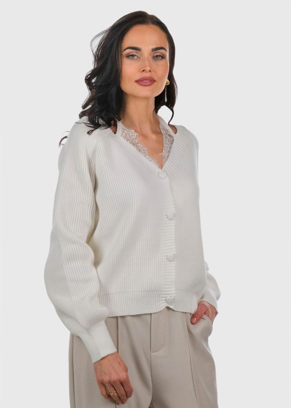 Angeletta balts kardigans ar mežģīņu detaļām