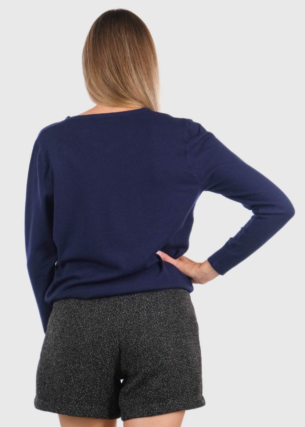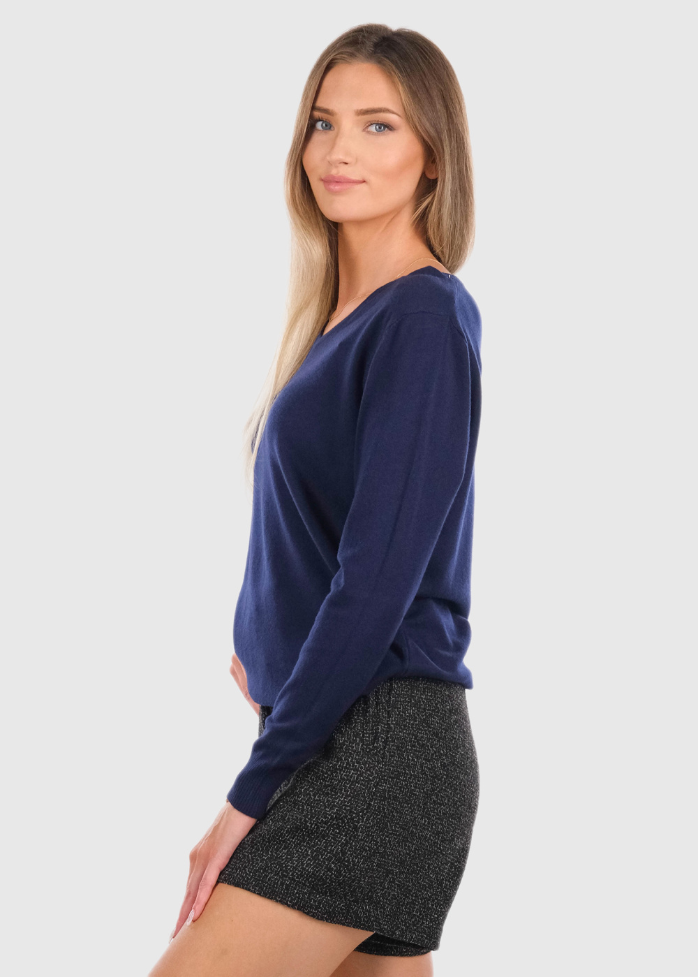 Eudora tumši zils džemperis ar V-veida izgriezumu