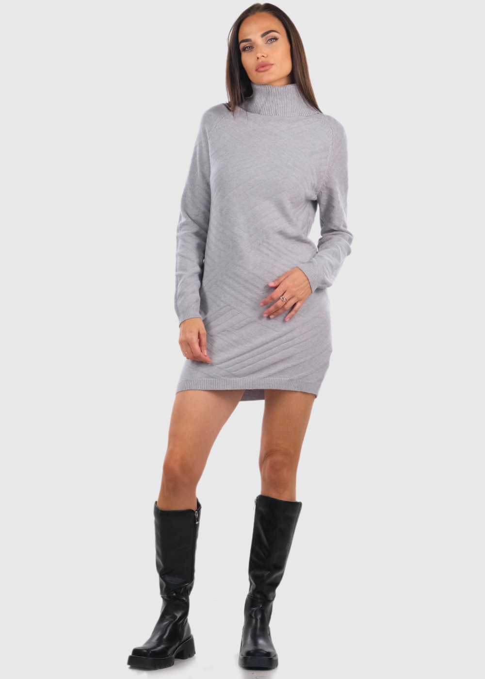 Geneva pelēka džemperkleita ar augstu apkakli