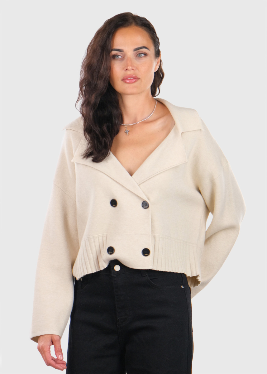Kristína balts kardigans ar pogām