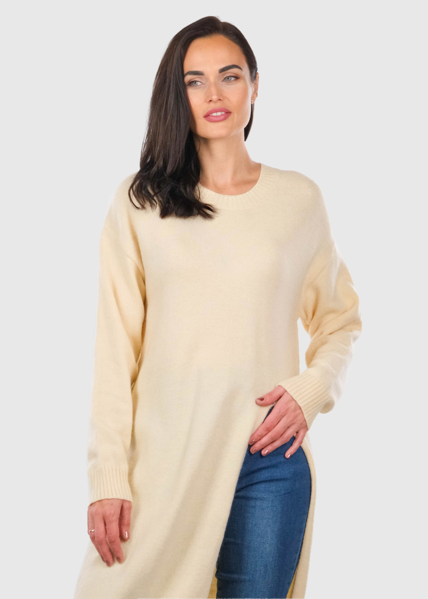 Leora bēšs gars džemperis ar šķēlumu