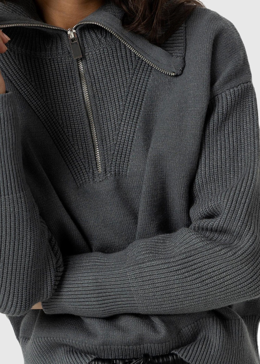 Tumši pelēks sieviešu džemperis ar rāvējslēdzi