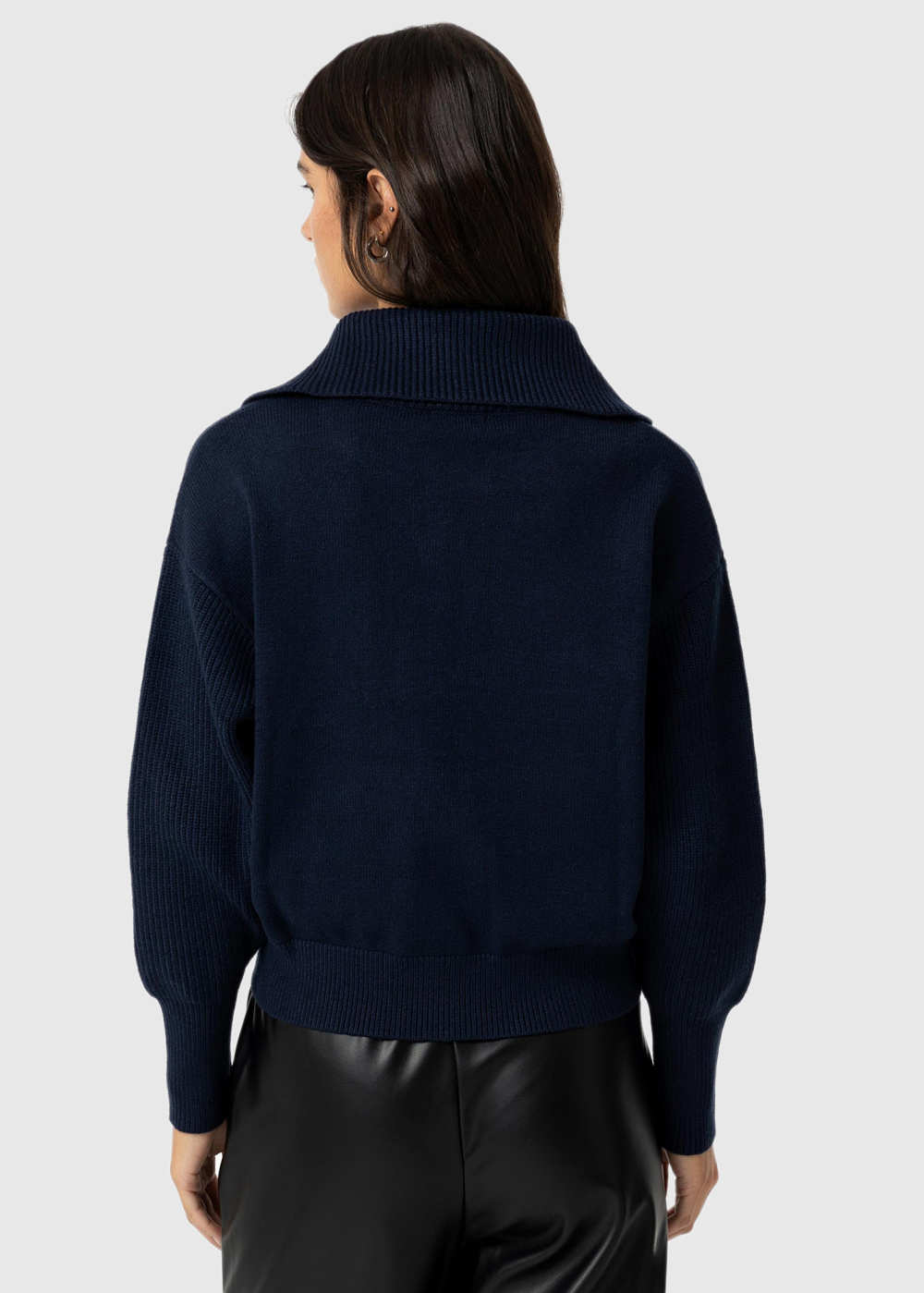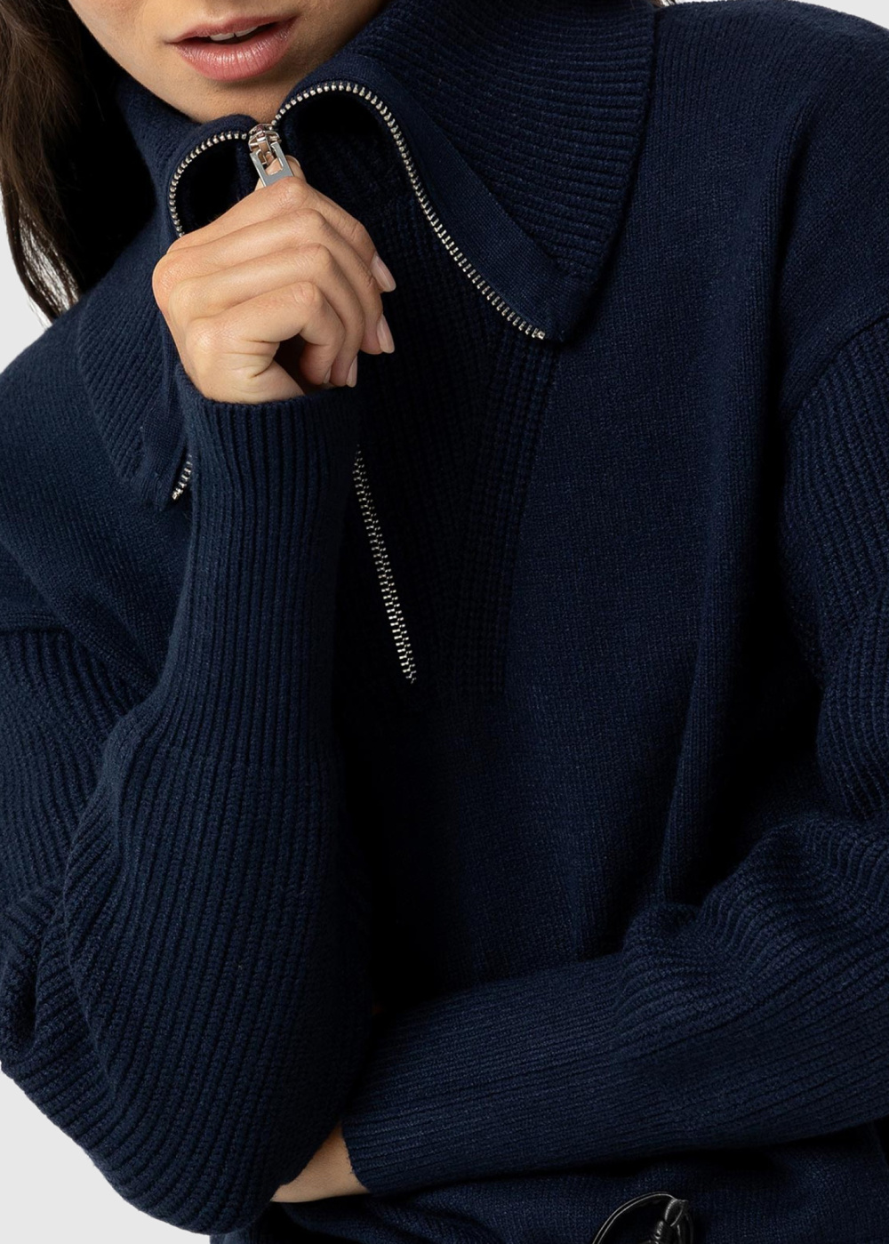 Tumši zils sieviešu džemperis ar rāvējslēdzi