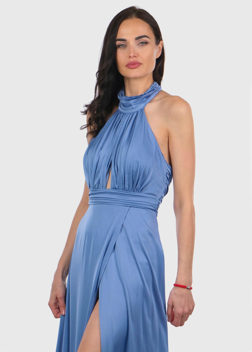 Cleo zila vakarkleita ar atvērtiem pleciem