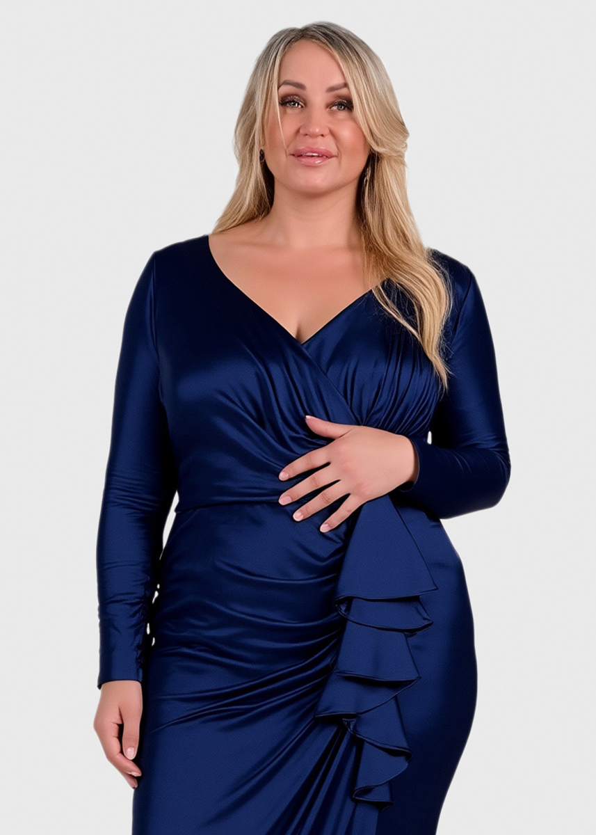 Gigi Lielo izmēru tumši zila gara vakarkleita ar šķēlumu
