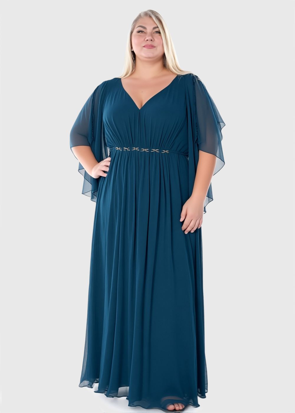 Velta Lielo izmēru zila gara vakarkleita ar rāvējslēdzēju