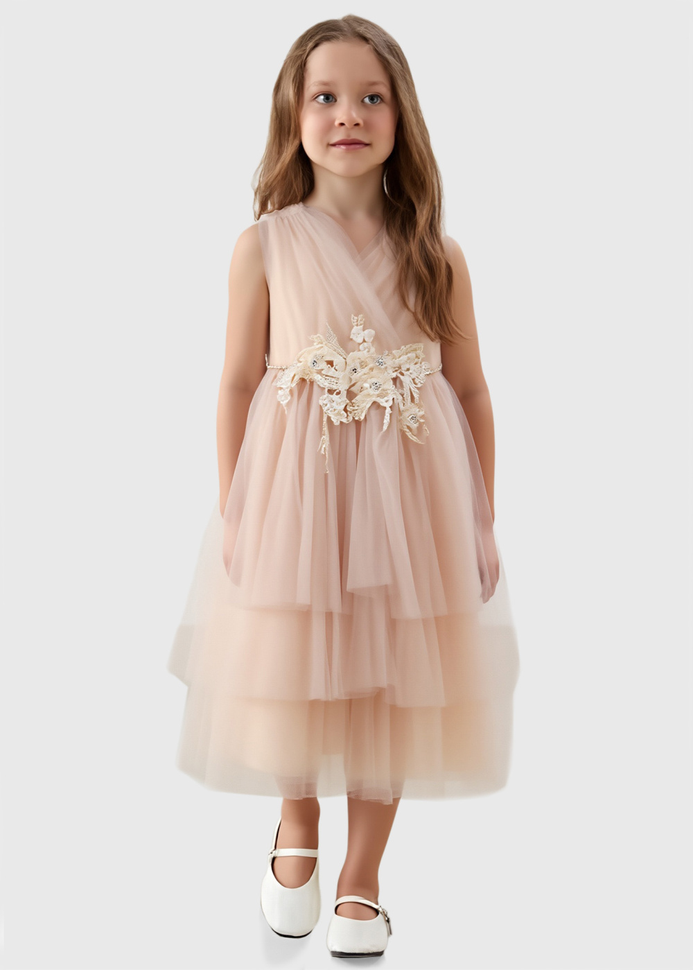 Corneliu gaiši rozā kleita ar volāniem