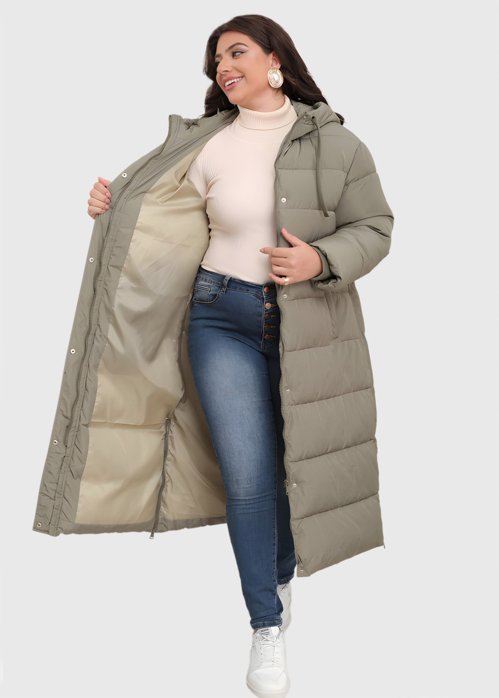 Daniela Lielo izmēru haki gara jaka ar kapuci Daniela Lielo izmēru haki gara jaka ar kapuci - back Daniela Lielo izmēru haki gara jaka ar kapuci