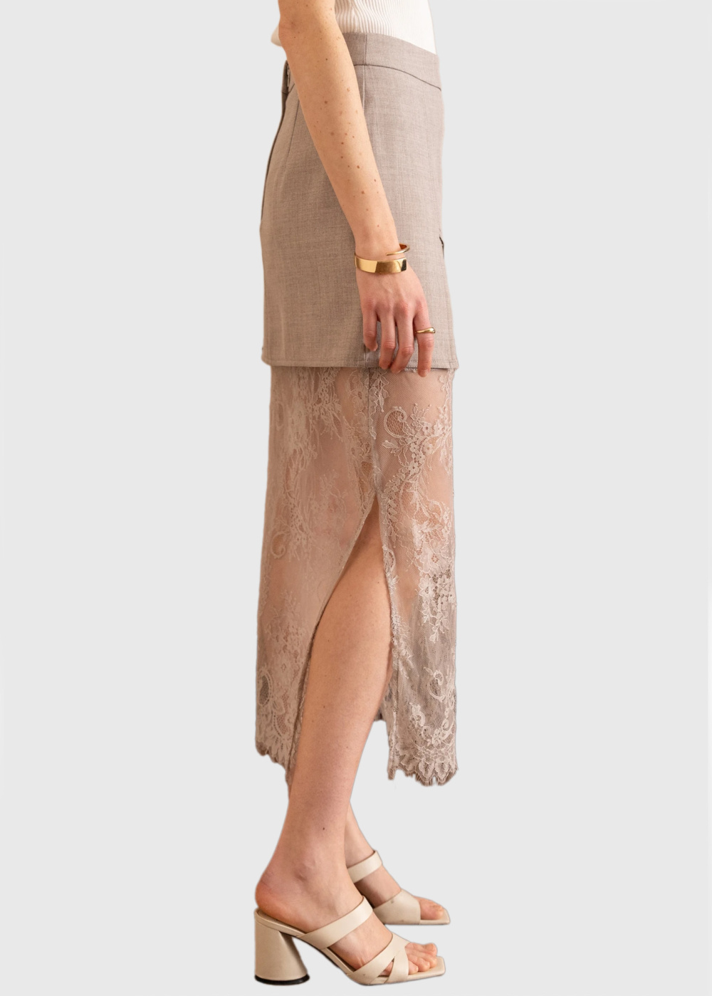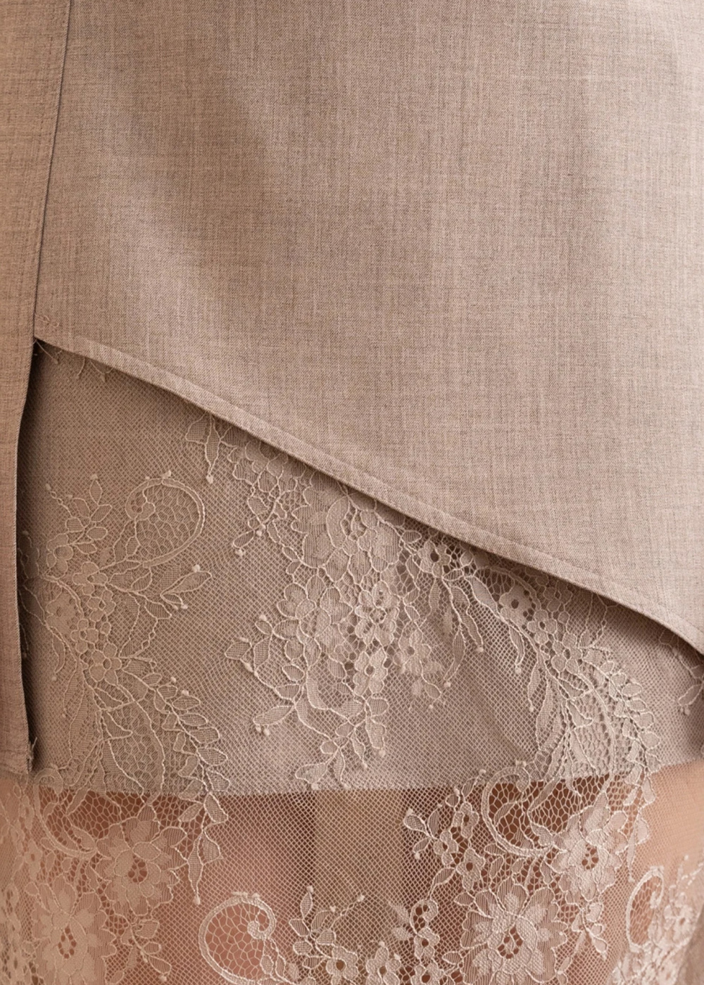 Tamila gaiši brūni gari svārki ar mežģīnēm