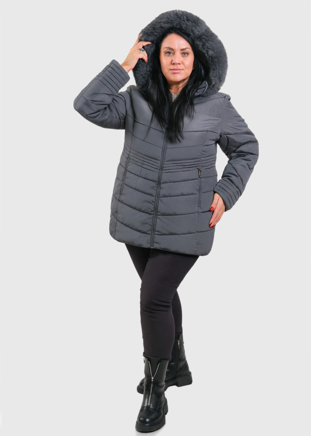 Faiza Lielo izmēru pelēka jaka ar kapuci