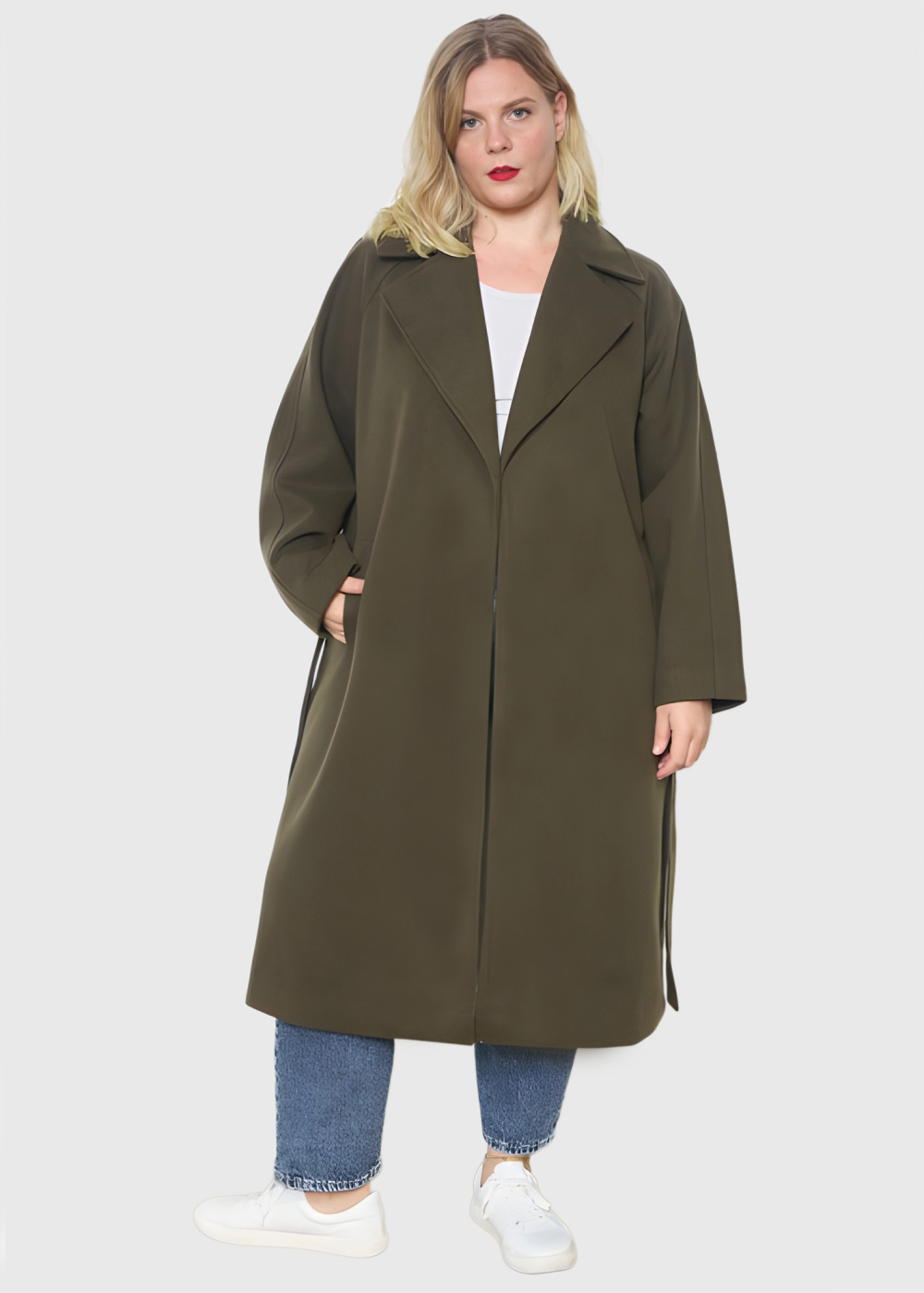 Jessica Lielo izmēru haki mētelis ar jostu