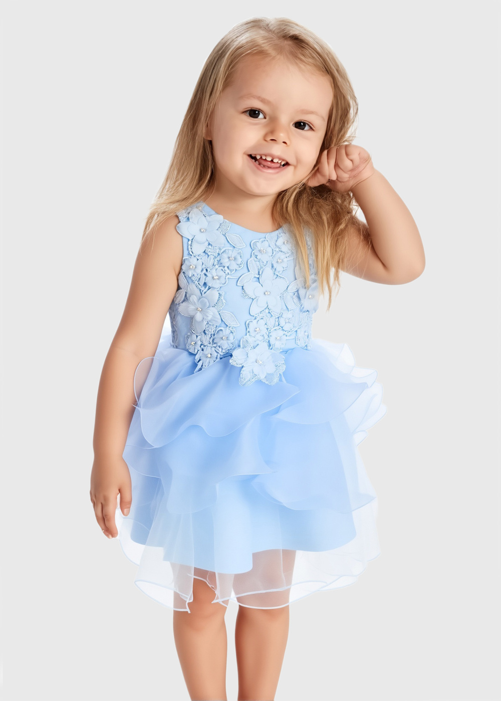 Kristína gaiši zila kleita ar dekoratīvu topu