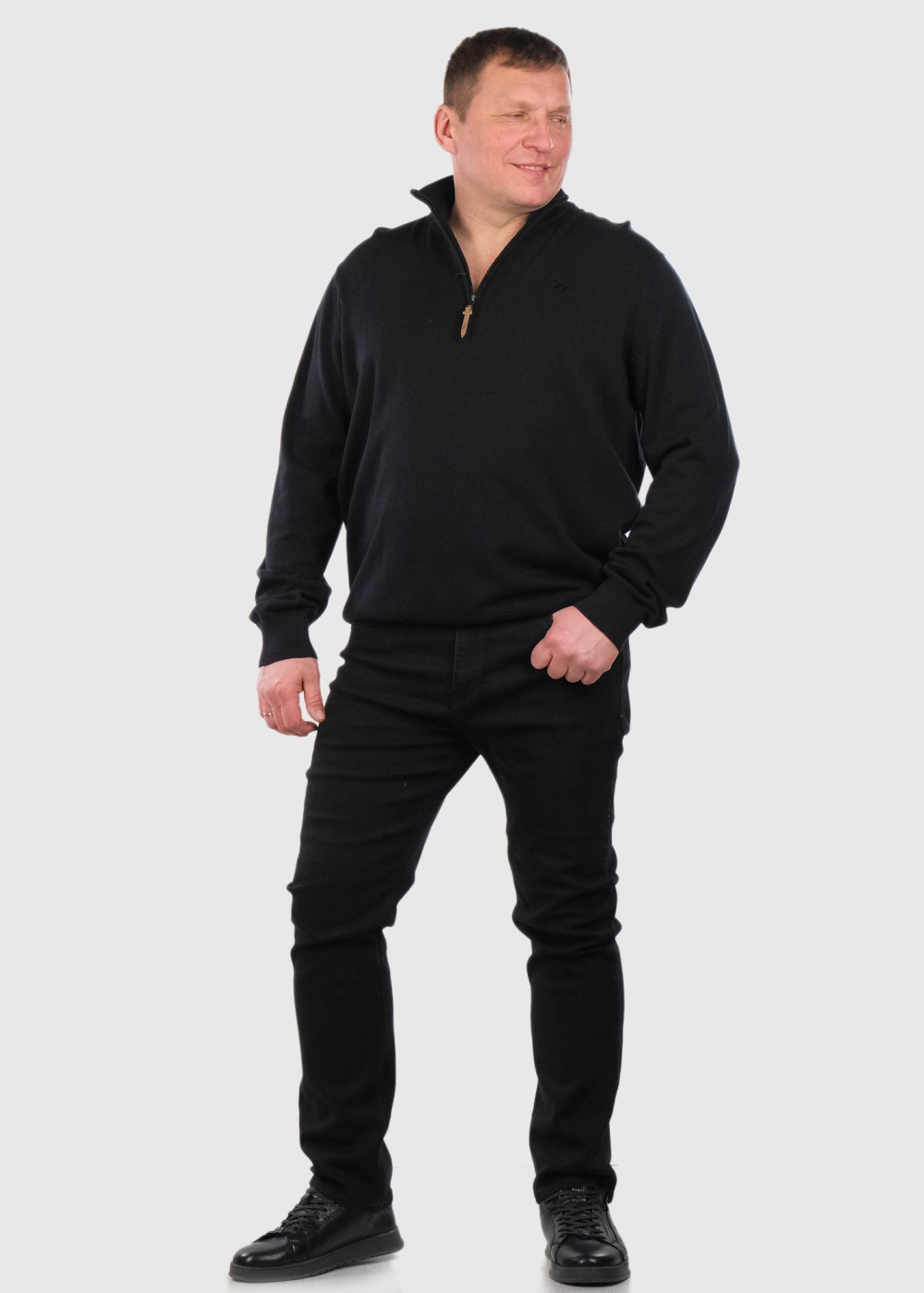 Manlio Lielo izmēru melns džemperis ar rāvējslēdzēju